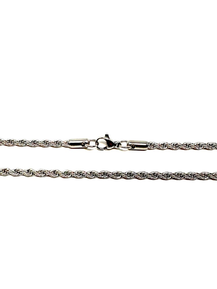 Silver-tone rope chain.Clean shine, street-ready look. Perfect solo or stacked to upgrade any fit. Simple. Bold. Essential.